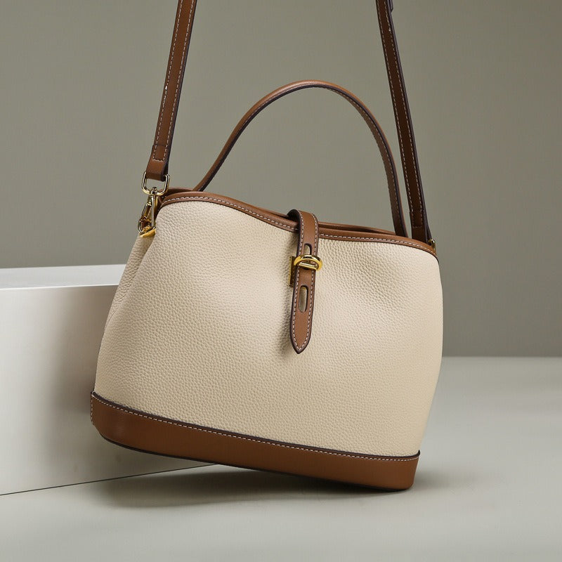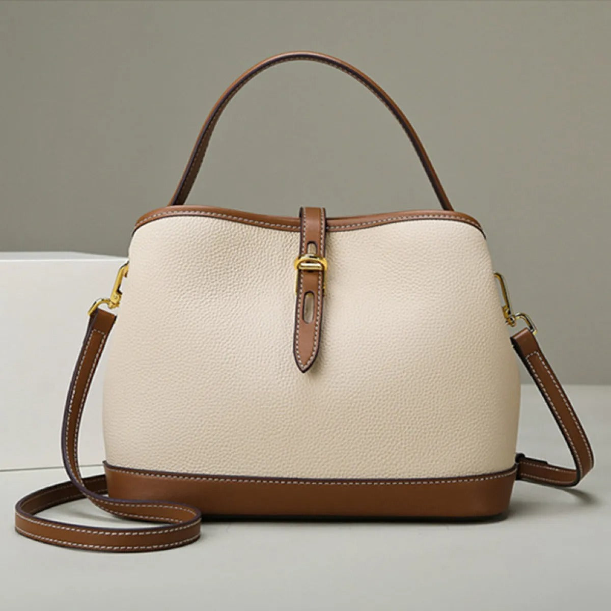 Tweekleurige gestructureerde leren schoudertas voor dames - Teresa