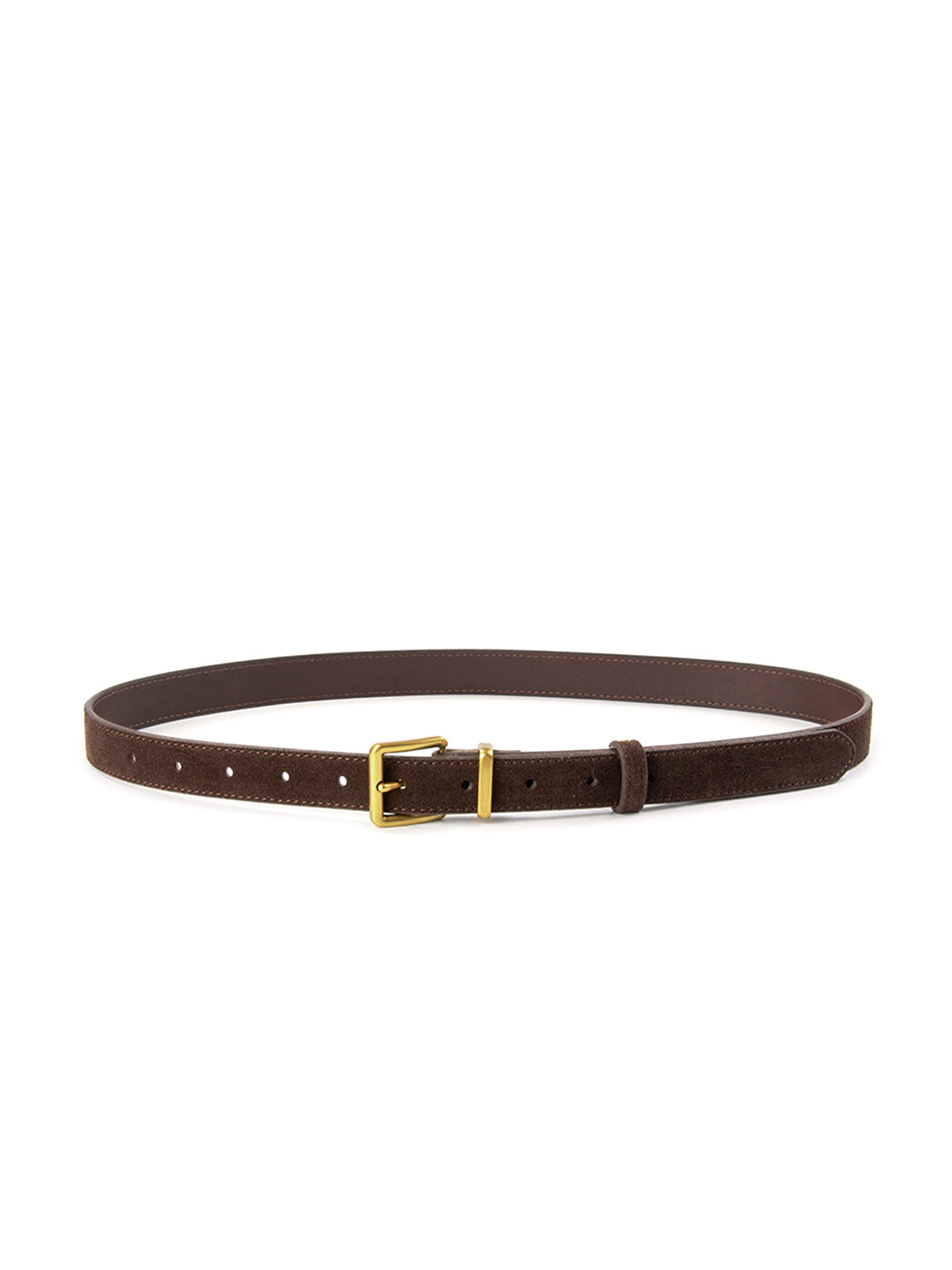 Elegante en hardly elegante suède riem met dunklekkel en smalle gesp