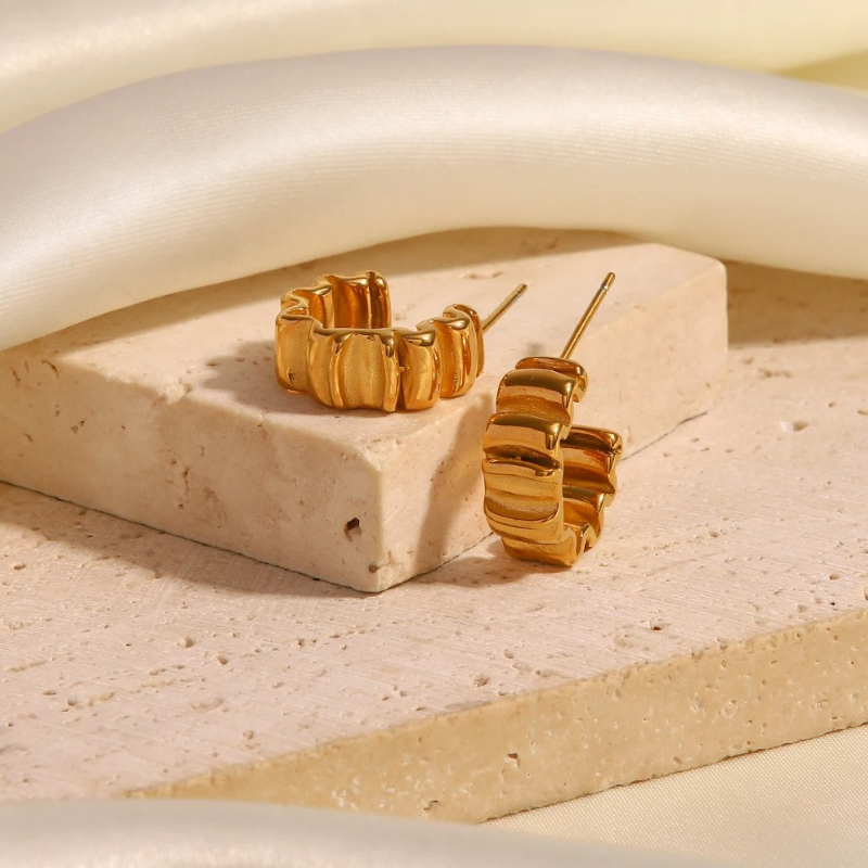Gouden Oorbellen met Rimpeltextuur - Olivia