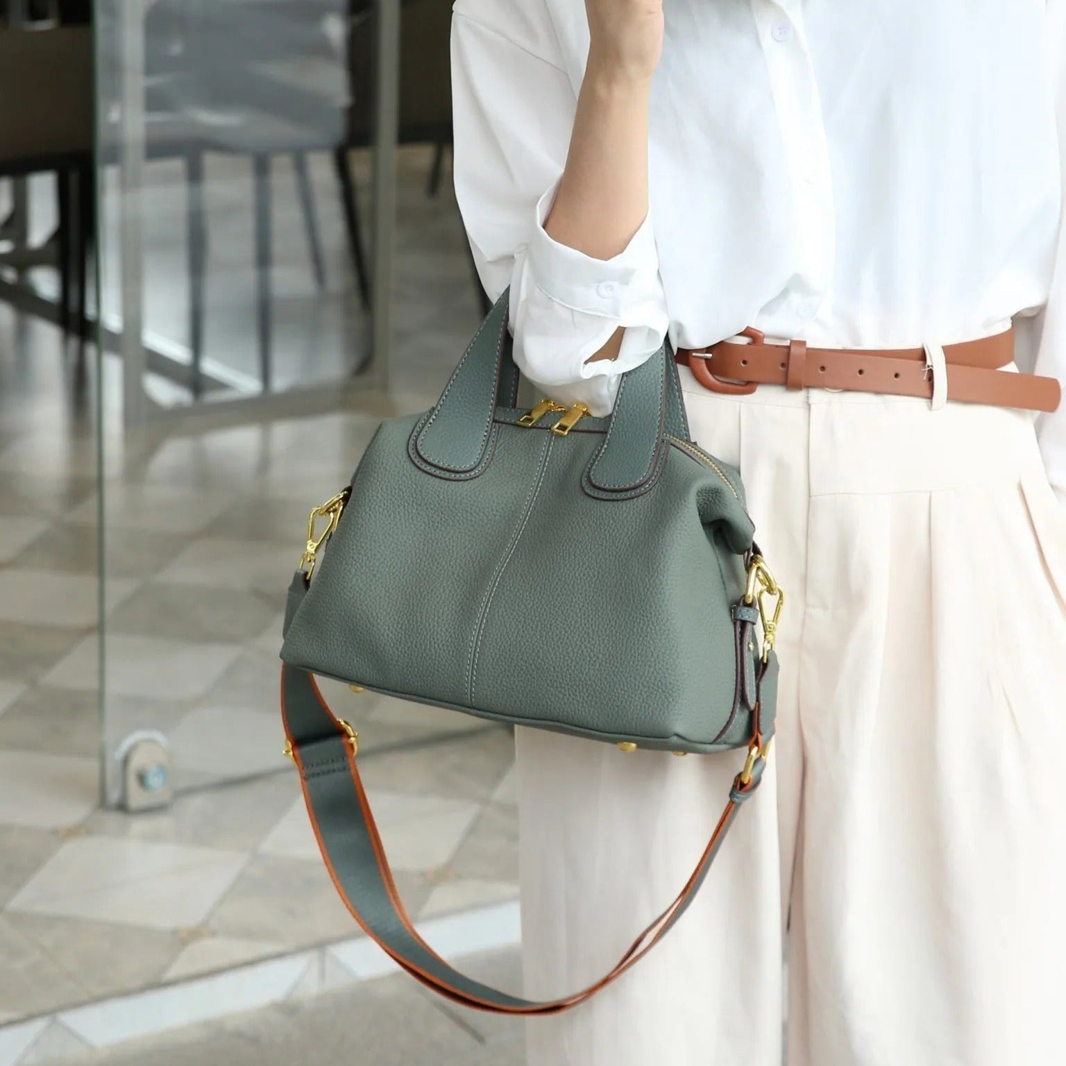 Damestas van imitatieleer met metalen hardware in gestructureerde stijl - Marcela