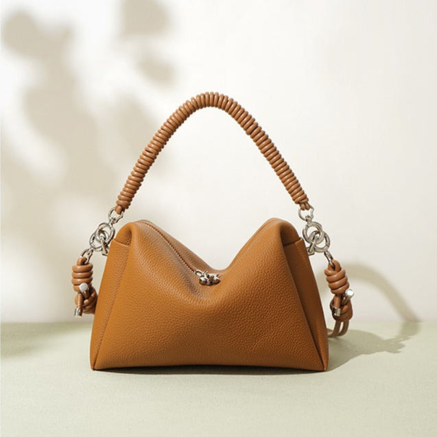 Schoudertas van echt leer voor vrouwen met gevlochten handvat - Mireya