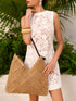 Elegante geweven boodschappentas met een stijlvolle leren handgreep